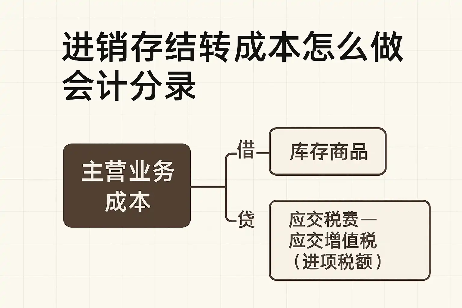 | 成本结转 | 主营业务成本/库存商品 | 主营业务成本增加 | 库存商品减少 |