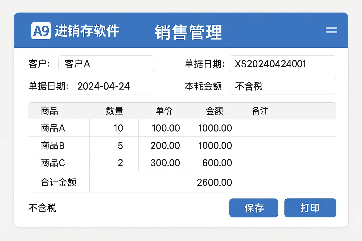 A9进销存软件是一款集采购、销售、库存与财务于一体的信息化管理平台。其设计充分考虑了中国企业在涉税业务中的多样需求,既支持常规的“含税”作业流程,也提供了灵活切换至“不含税”的功能模块。