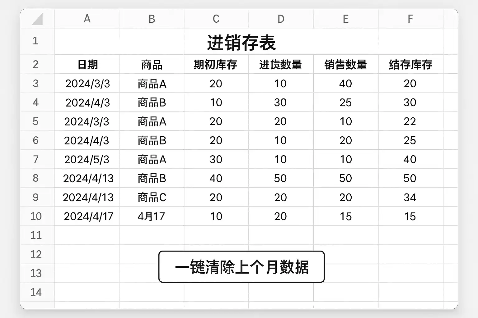 进销存表怎么一键清除上个月数据?
