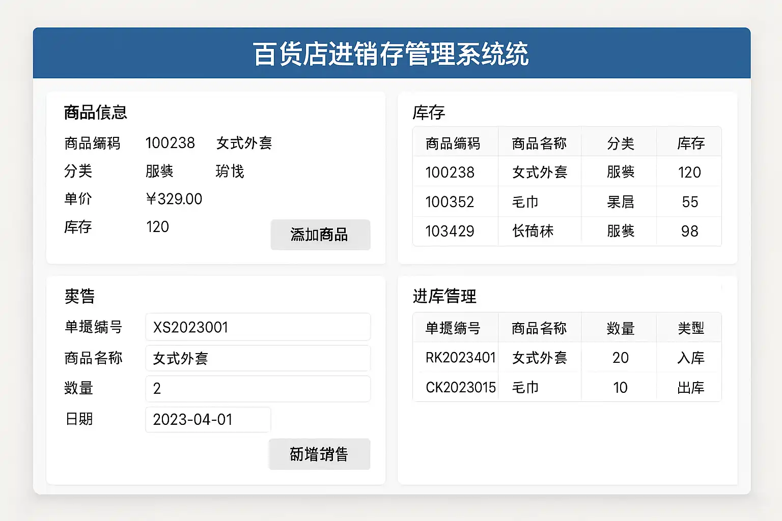 百货店进销存管理系统的核心功能主要包括: