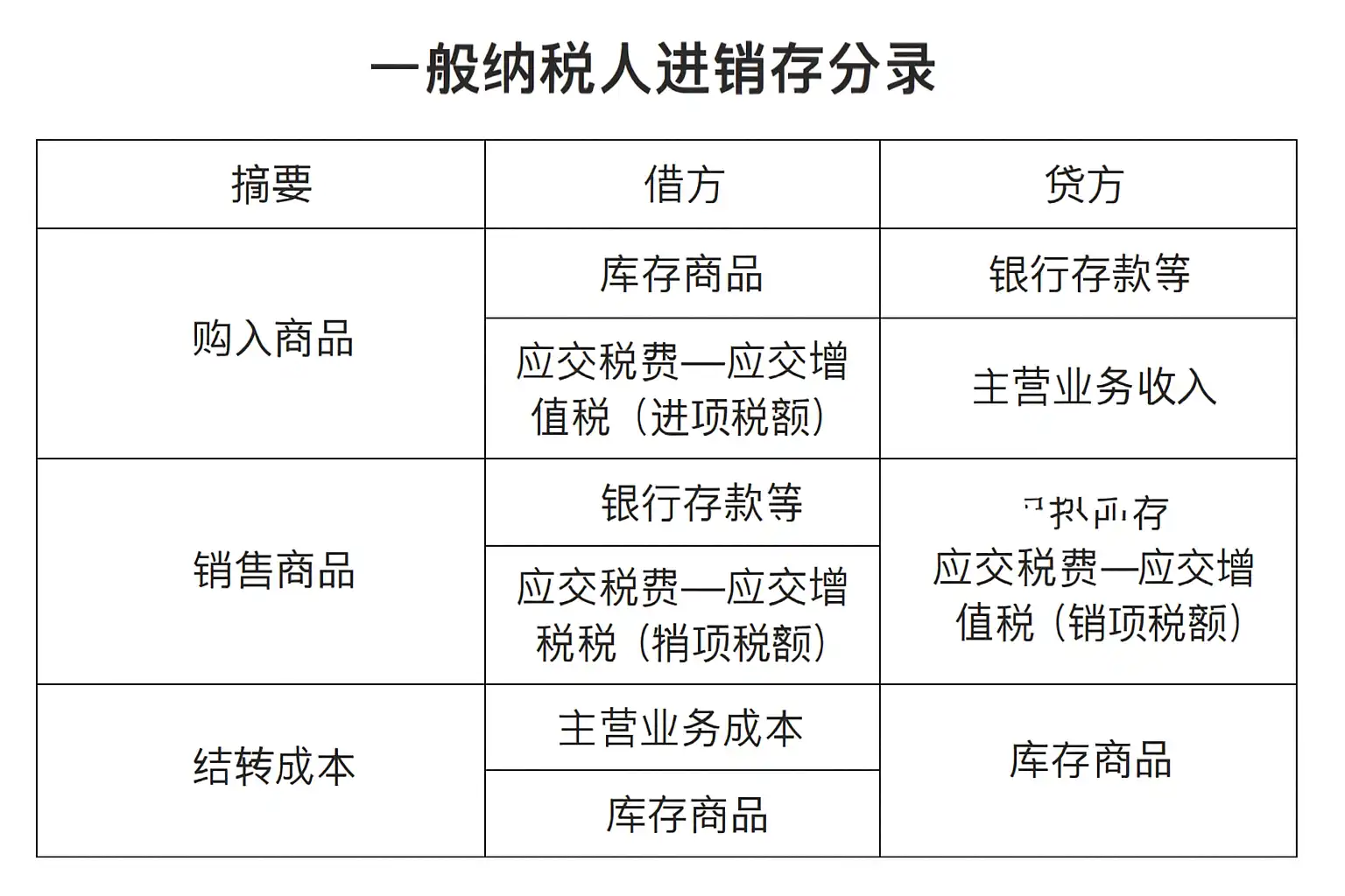 一、一般纳税人进销存分录核心流程