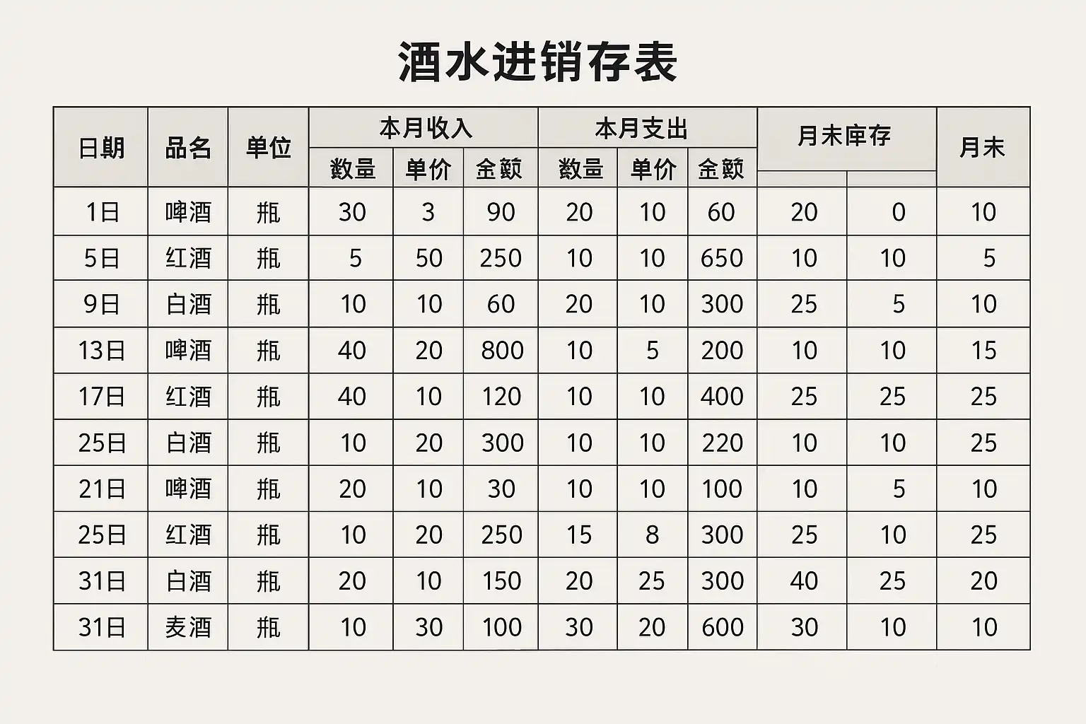 酒水进销存表格怎么做一个月?快速掌握核心技巧轻松管理