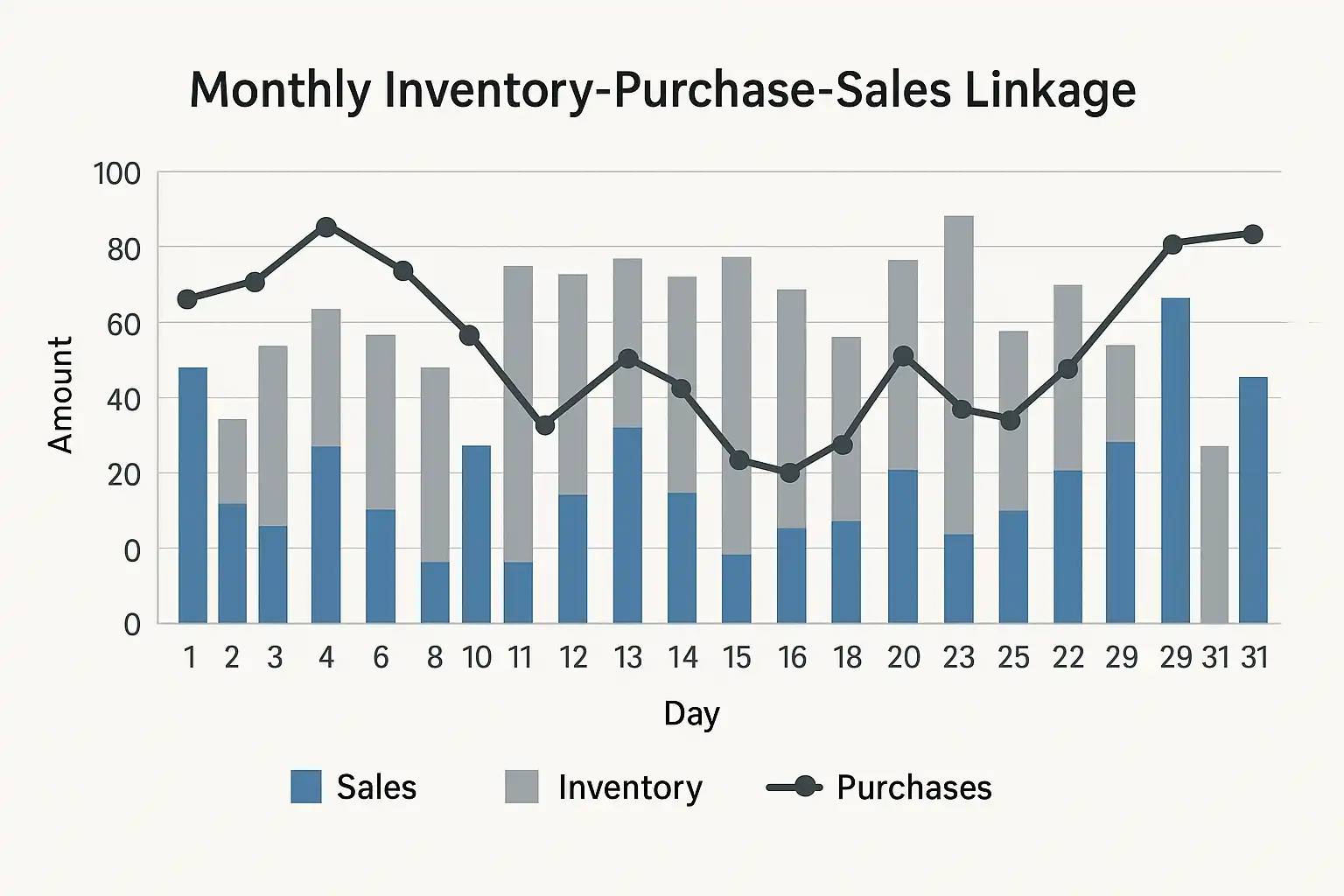 | 期末库存 | 月末实际剩余可用库存 | =期初+采购-销售±报损溢 |