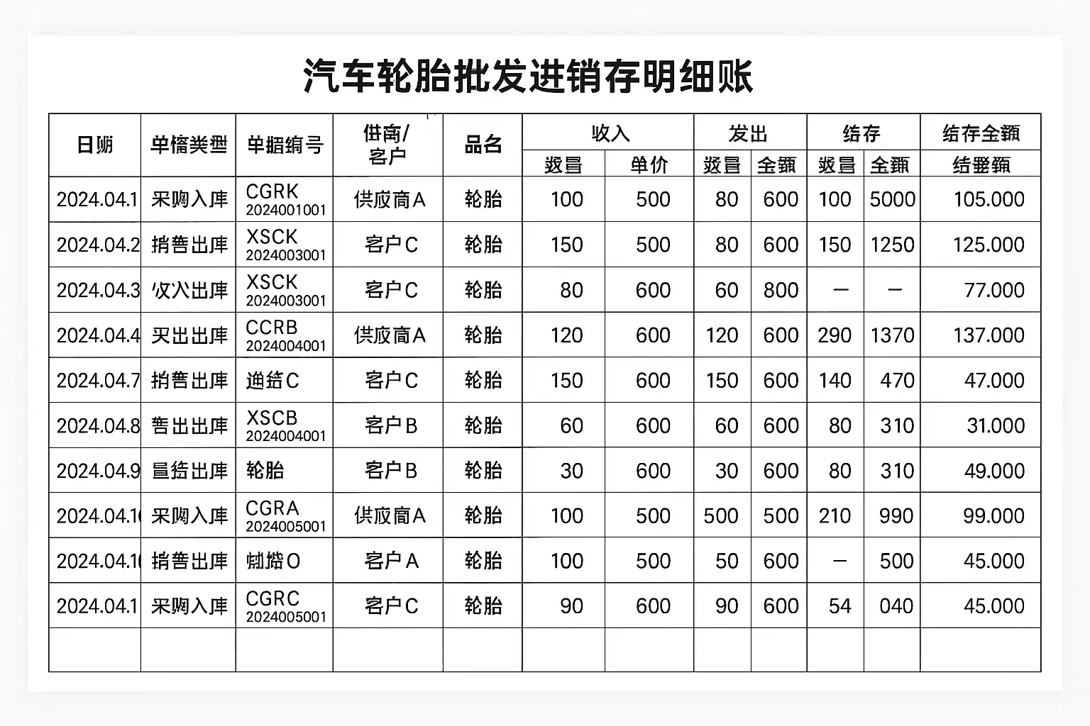 汽车轮胎批发进销存明细账怎么做?