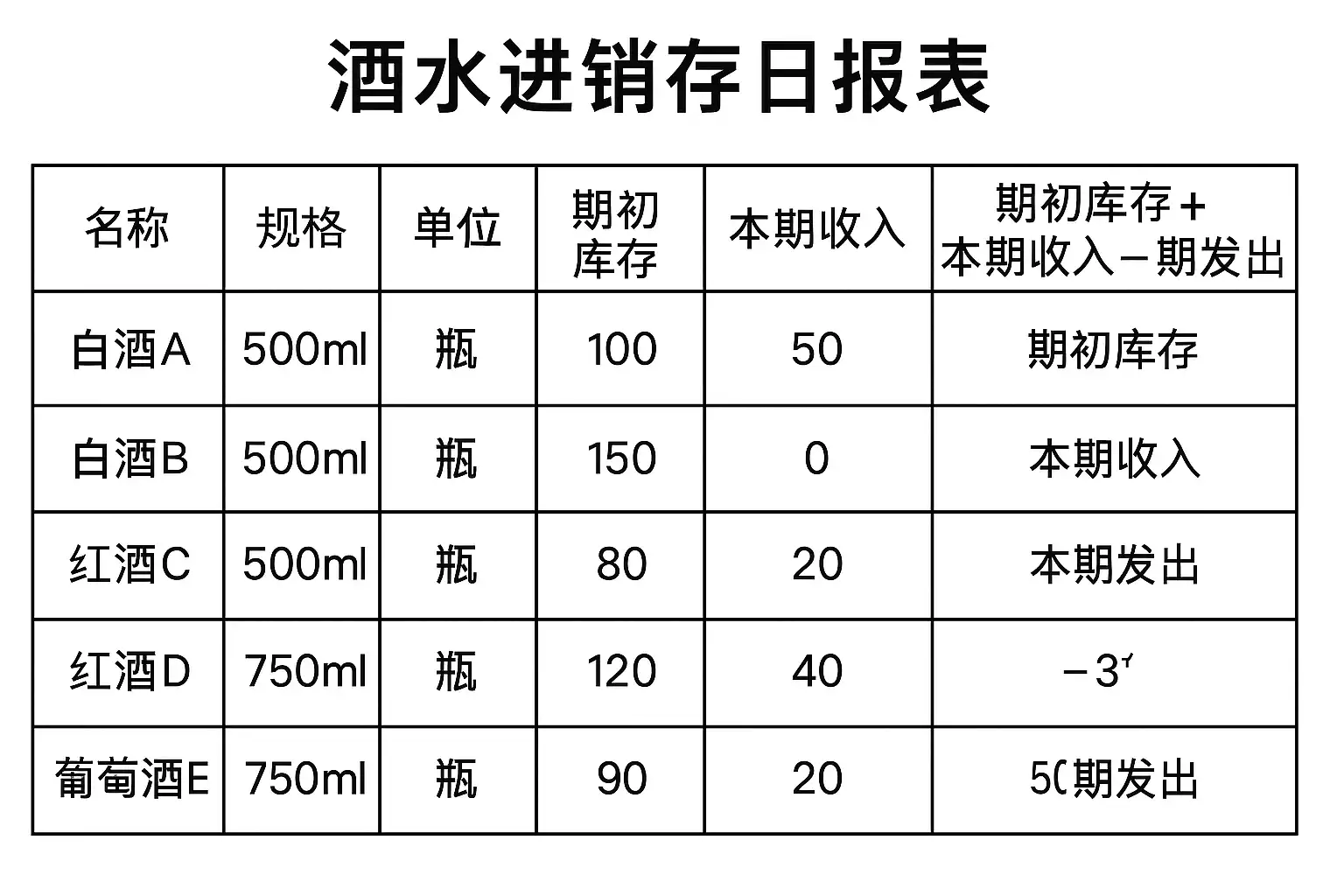 酒水进销存日报表计算方法详解,酒水进销存日报表怎么计算?