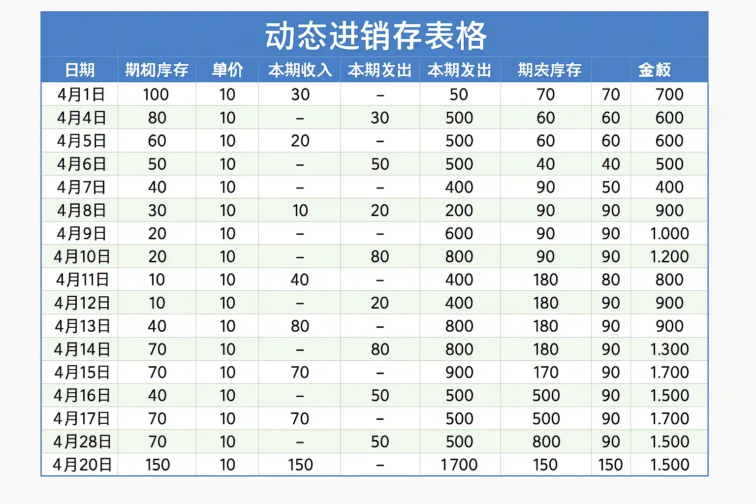 《动态进销存表格制作怎么做一个月》