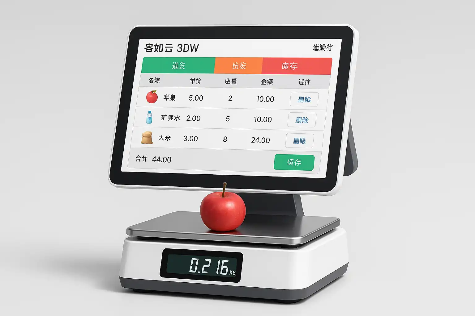 称重一体机(如客如云3DW)集成了商品识别、重量采集和交易结算等功能,但其原生系统通常只覆盖前端销售环节。如果要实现更全面的采购-入库-销售-出库等环节管理,需要将其与专业的进销存平台(如简道云进销存)进行数据对接。