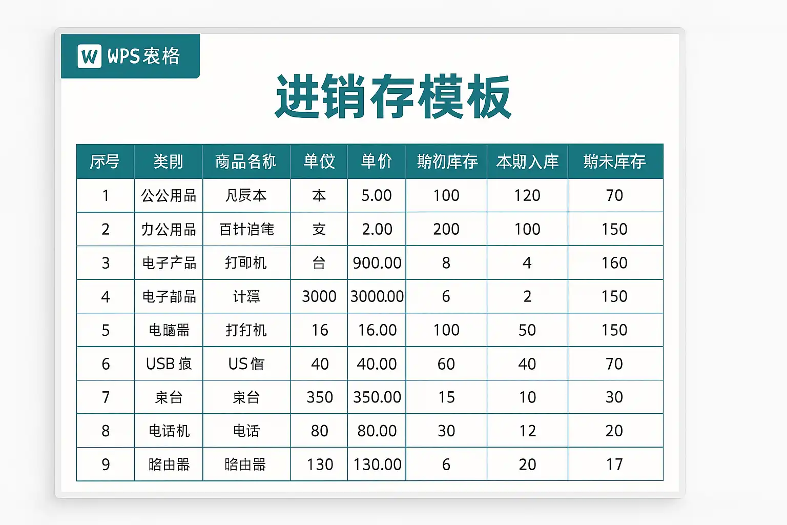 WPS进销存模板主要涵盖以下核心功能:
