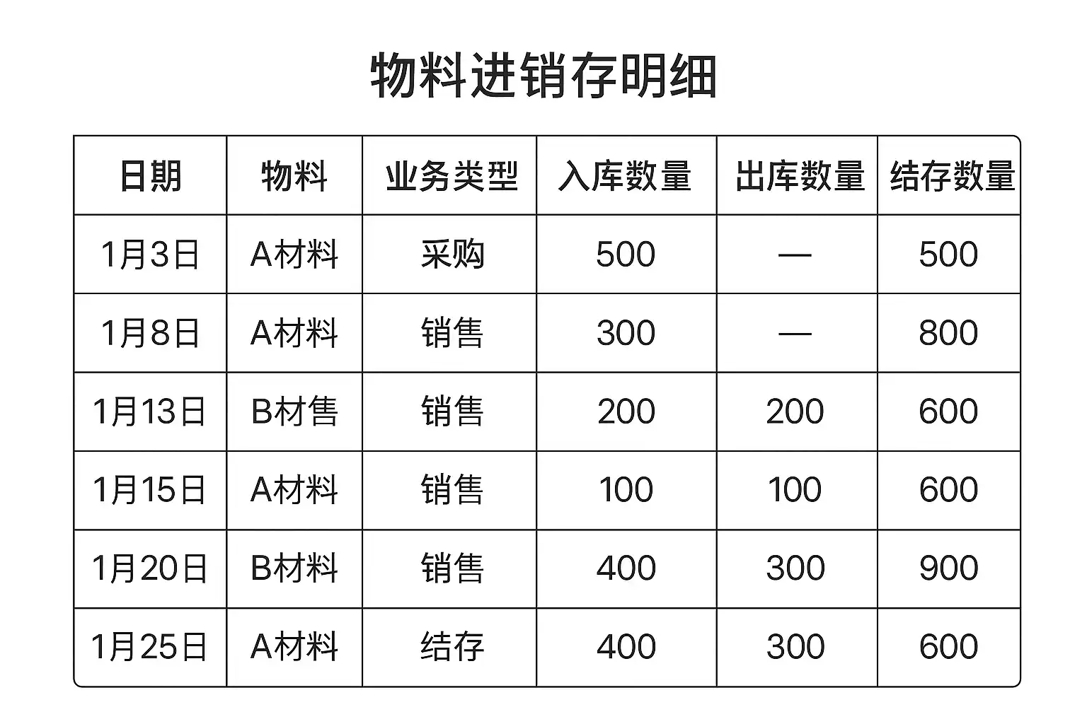 物料进销存明细系统通过详细记录每笔进出库交易,实现账实相符,支持财务核算和审计需求: