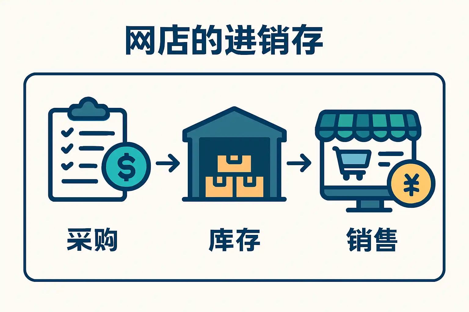 网店进销存定义 进销存即“采购(进)、销售(销)、库存(存)”三大业务环节的数据流转与管理。对于网店而言,不仅涵盖线上订单,还涉及供应链协同、仓储物流以及财务结算等多个环节。