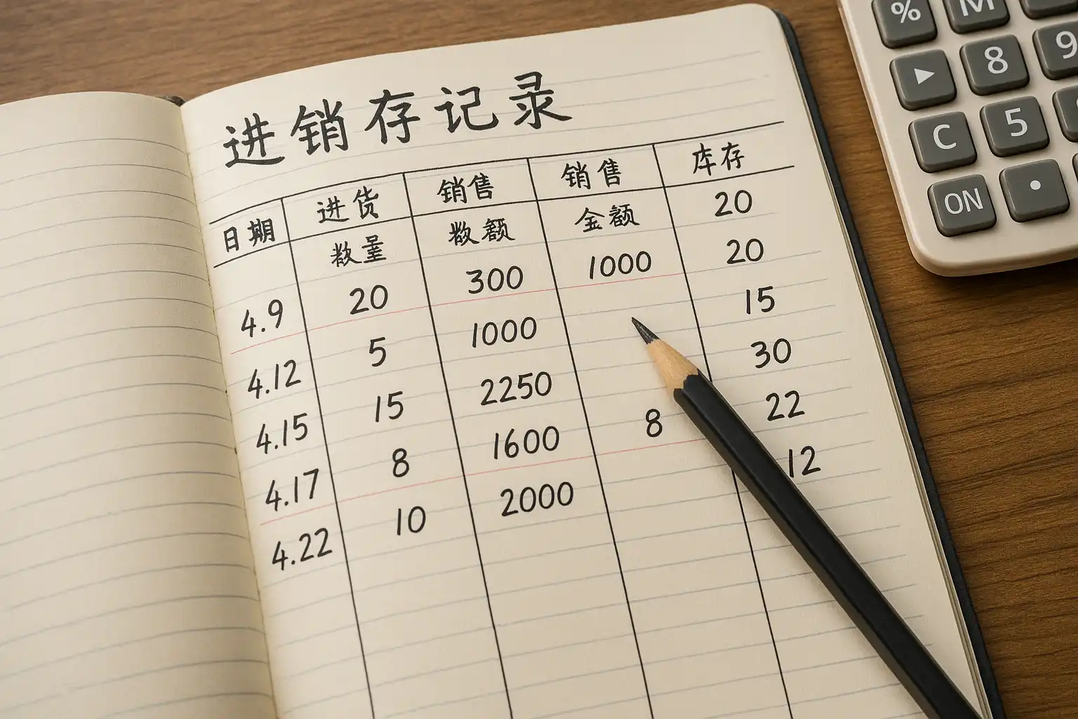 - 建立基础表格:用Excel或纸质表格分别创建“采购记录”、“销售记录”和“库存明细”三张表。