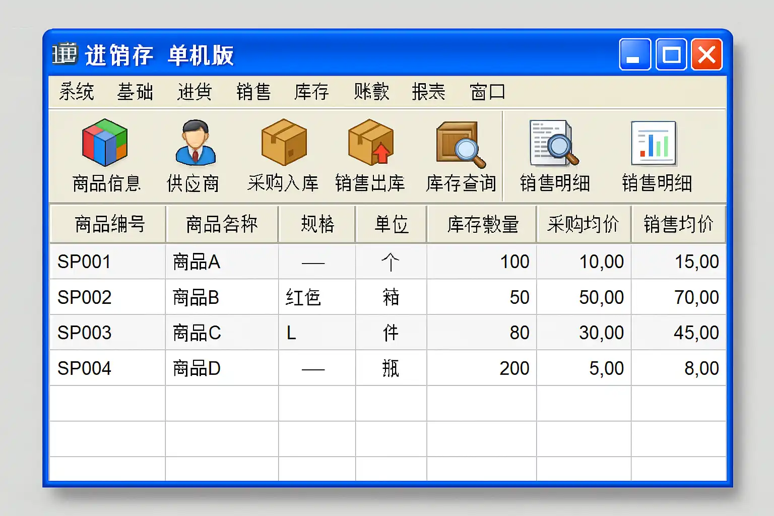 定义: 单机版进销存是指安装在本地电脑上的一体化管理软件,主要用于商品采购(进)、销售(销)、库存(存)的管理。用户只需在一台电脑上进行操作,不依赖网络环境。