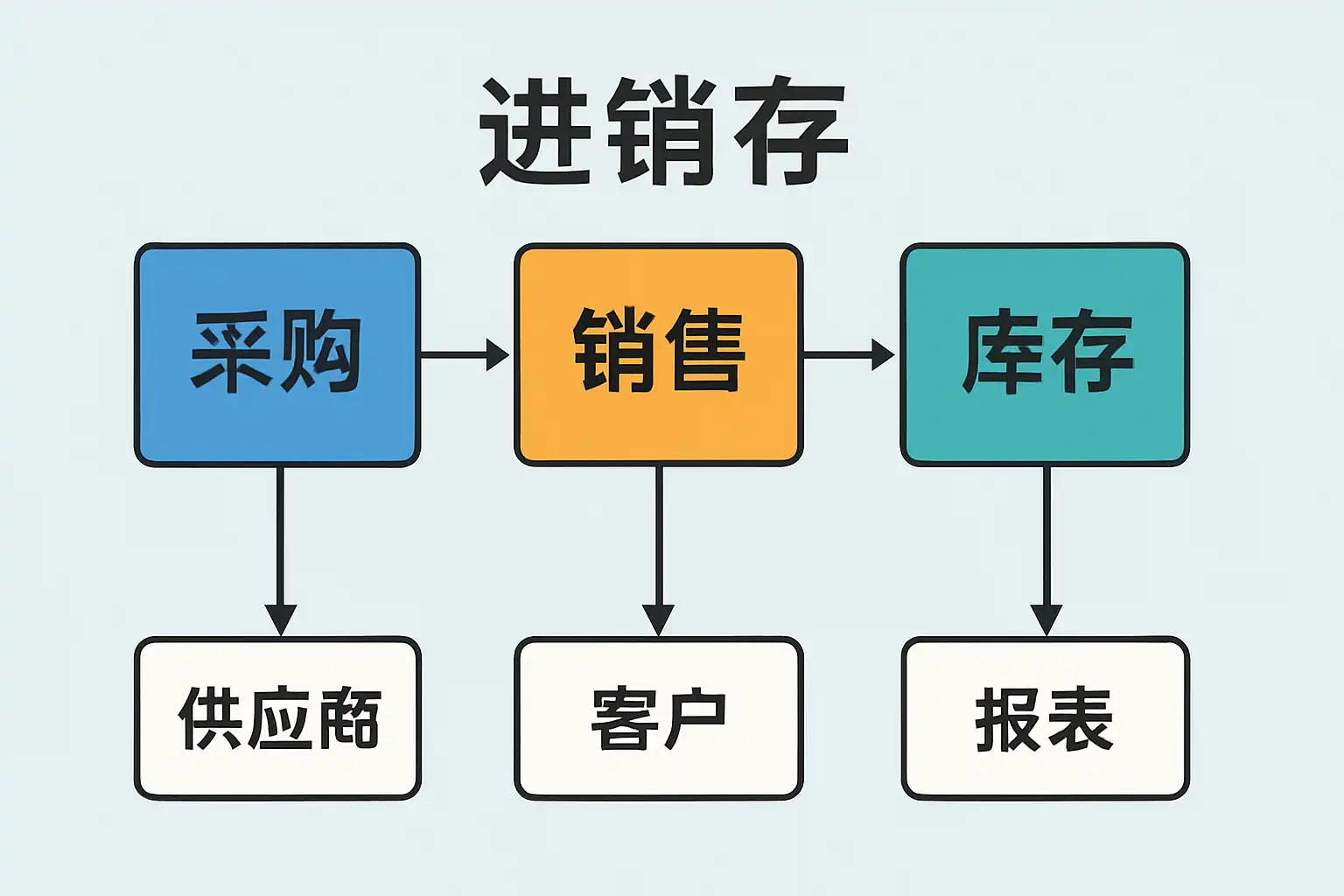 进销存系统主要涵盖采购管理、库存管理和销售管理三大核心功能: