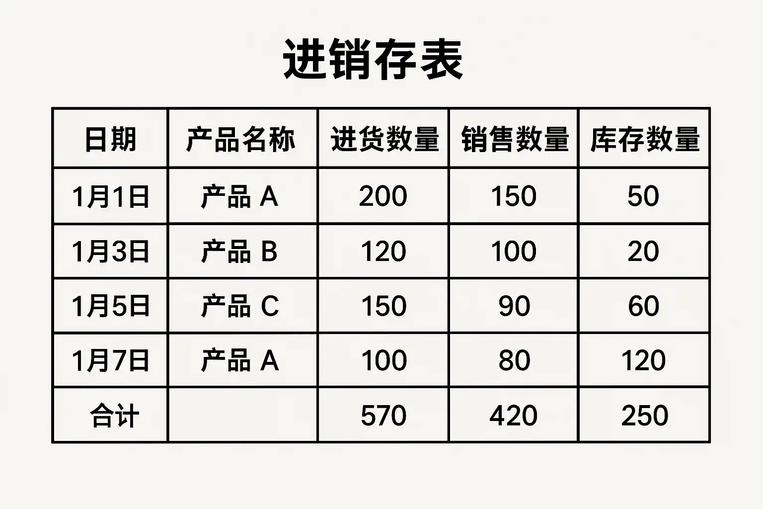 为了提升进销存表格中合计数据的可读性,建议采用以下结构化布局技巧: