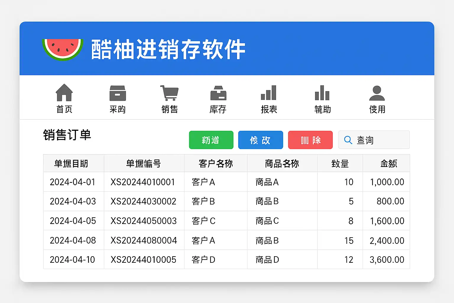 酷柚进销存软件主要提供以下核心功能: