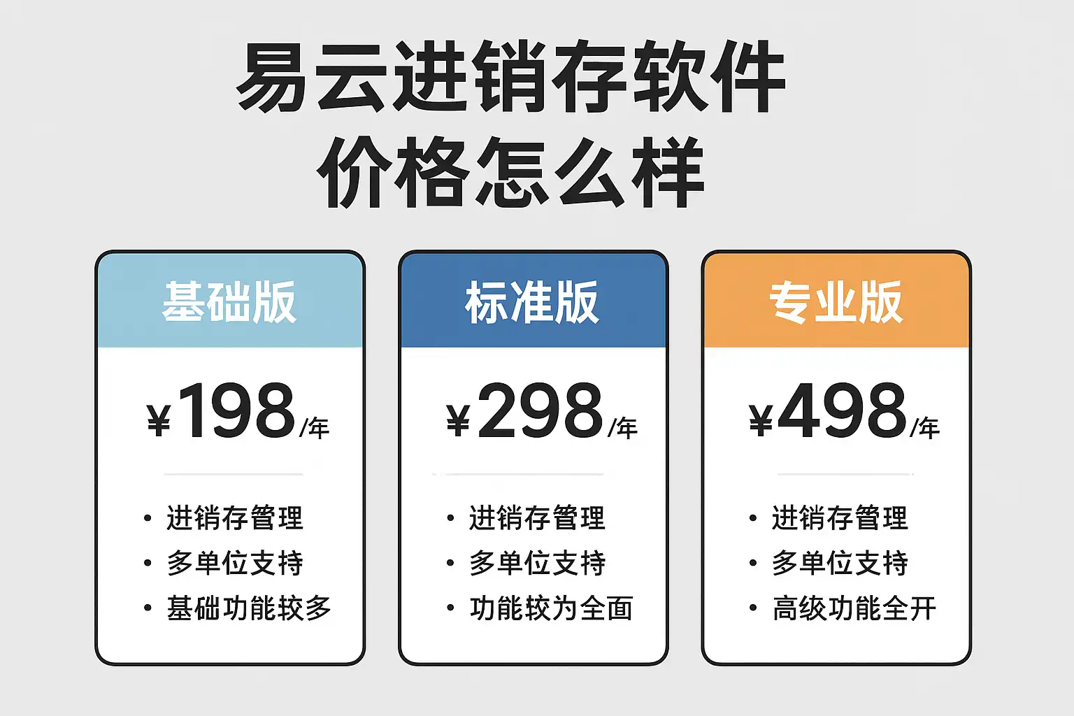 下表为主流进销存软件(以易云为代表)的典型价目表示意: