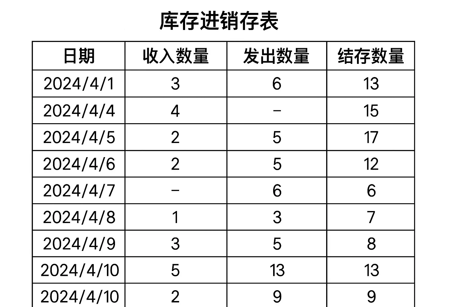 | 期初库存 | 某时间段开始时的商品数量 | 用于核对上月结余 |