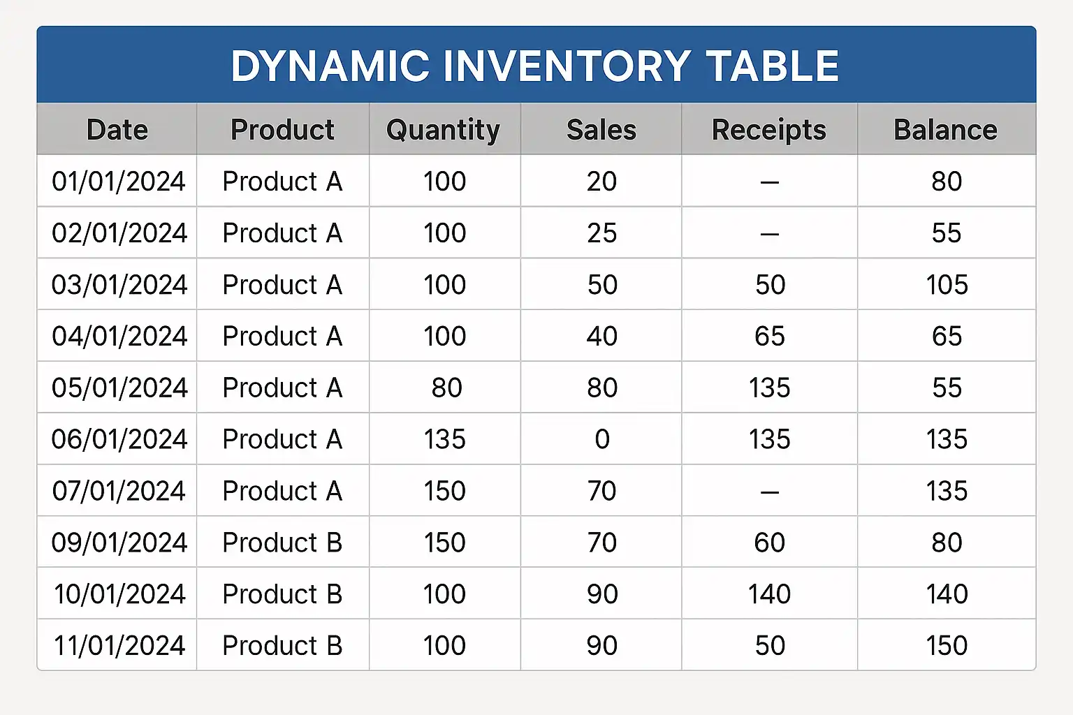 动态进销存表格不仅仅是传统的静态Excel或纸质台账,而是一套能够实时记录采购入库、销售出库及库存余量变化的数据系统。这类表格具有如下特征: