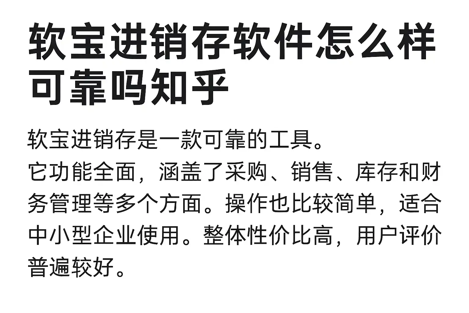 综上所述,“软宝进销存软件怎么样可靠吗知乎”这个问题,可以归纳为以下几点: