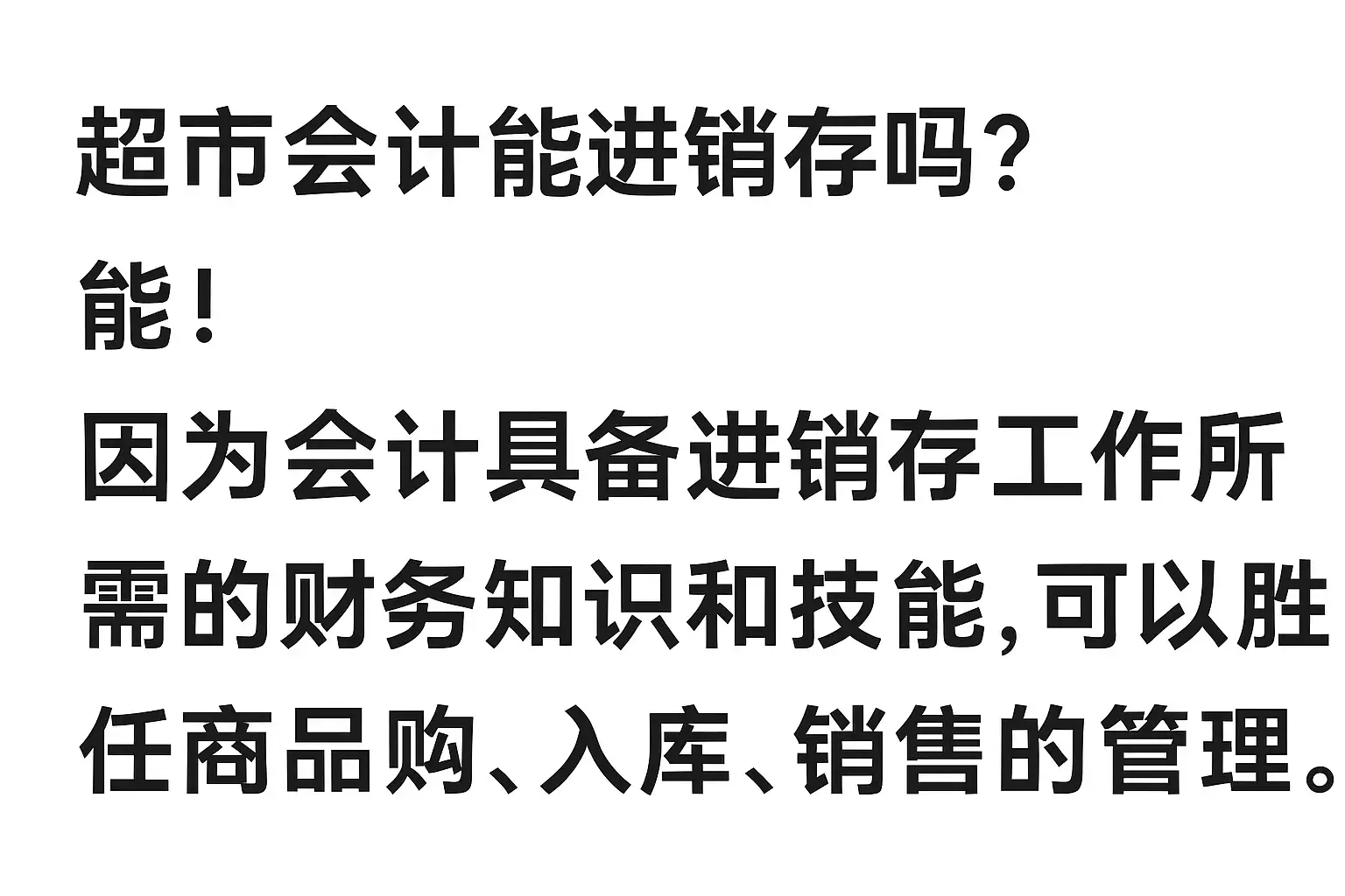 - 会计完全有能力且适合参与甚至主导超市的进销存管理,这不仅提升了工作效率,还优化了经营风险控制。
