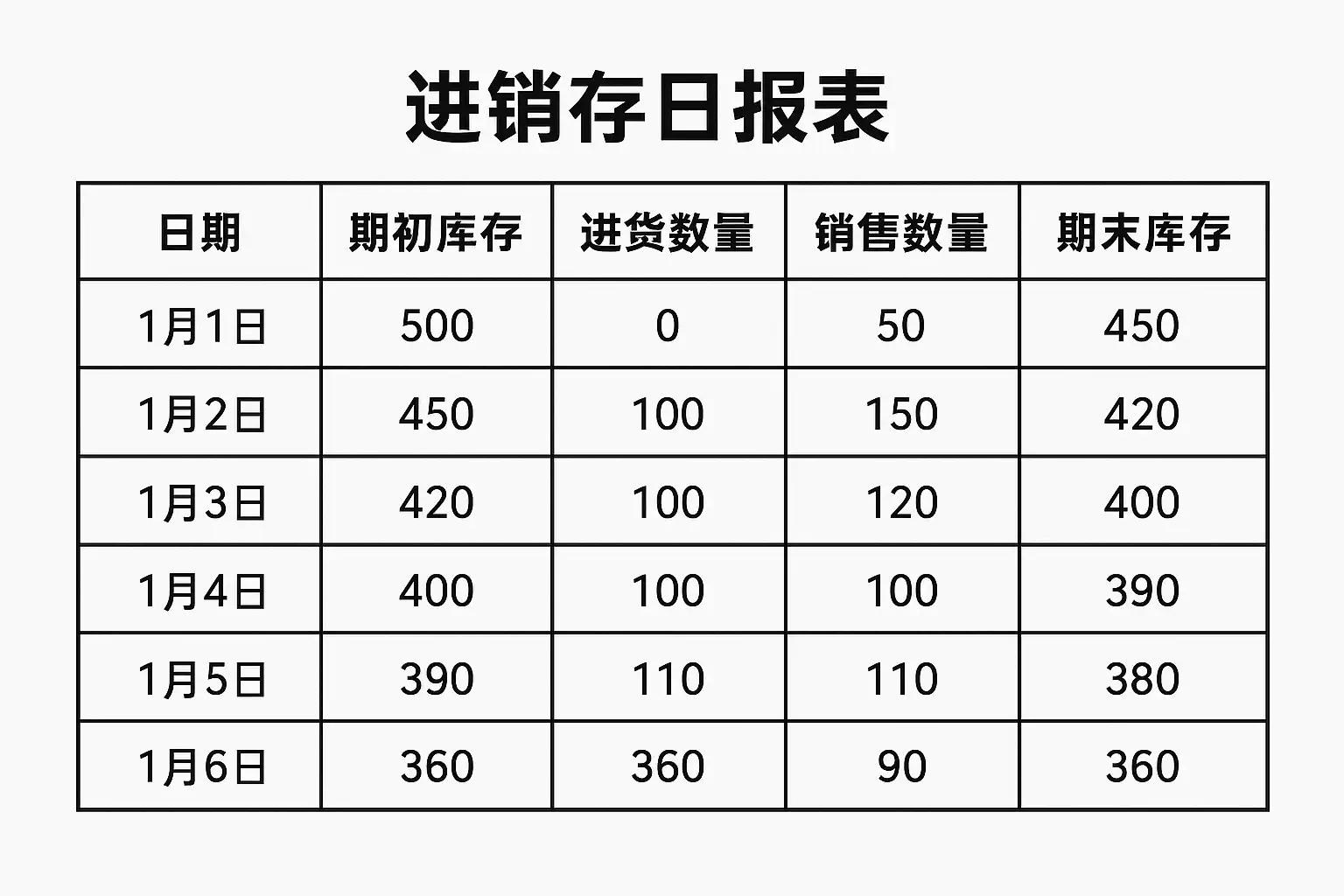 每日填写并审核进销存日报表,有助于提前发现潜在问题,如: