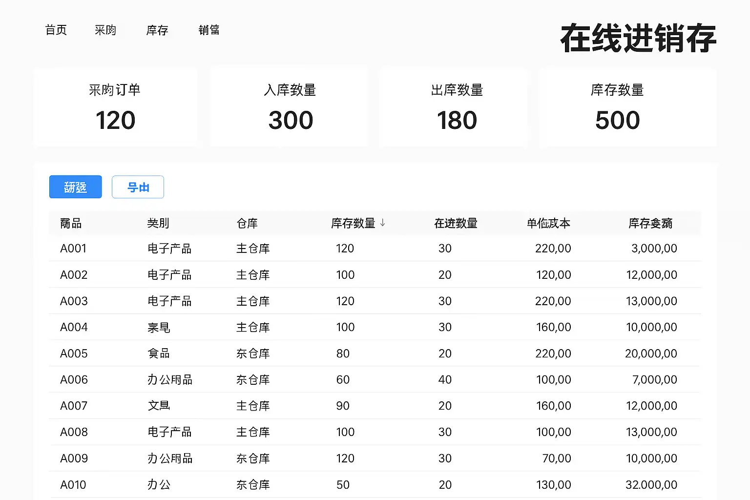 以一家贸易公司为例,通过简道云搭建专属“在线进销存”系统,可实现以下业务闭环: