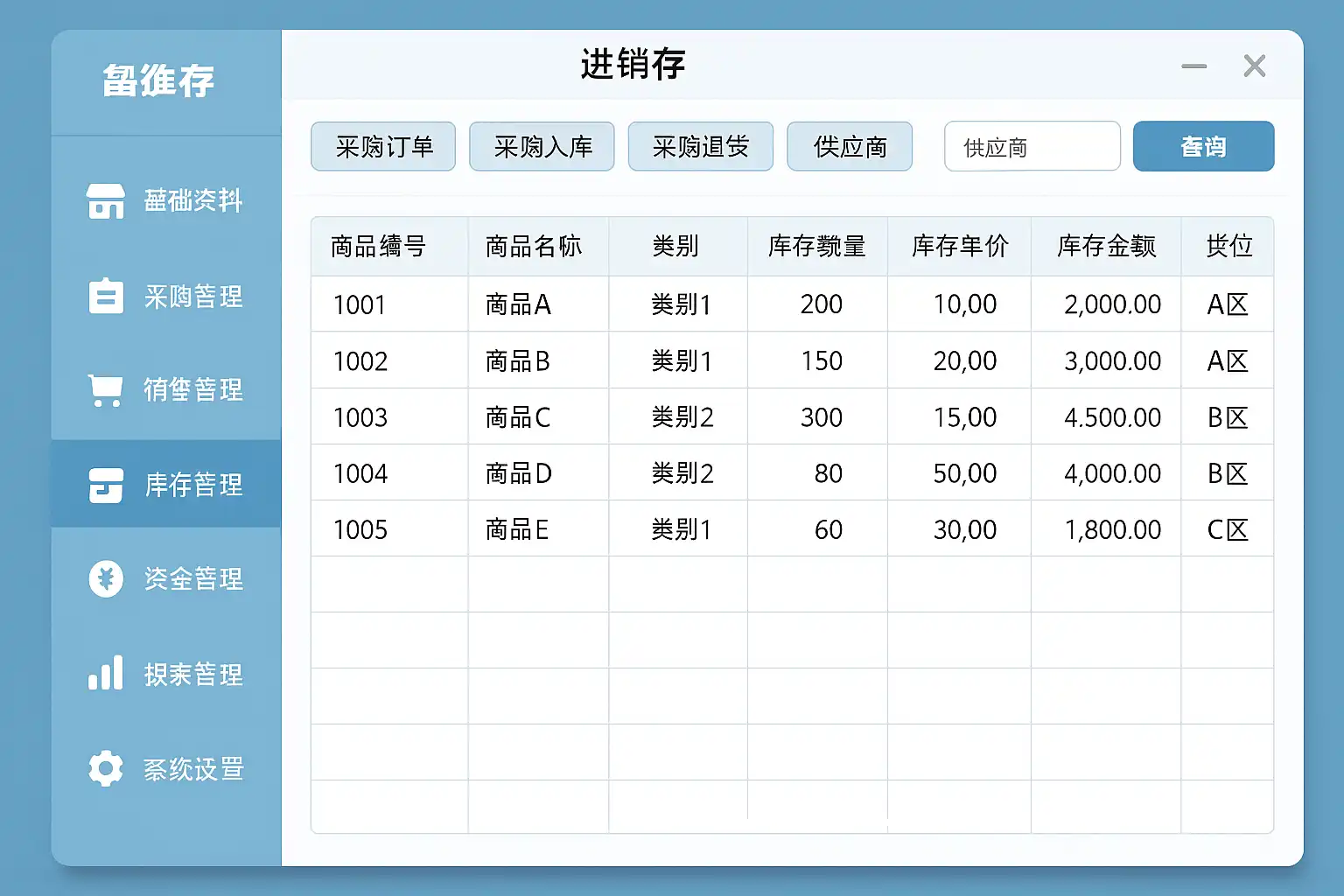 - 全流程覆盖:从采购→入库→销售→出库→库存盘点一站式闭环。
