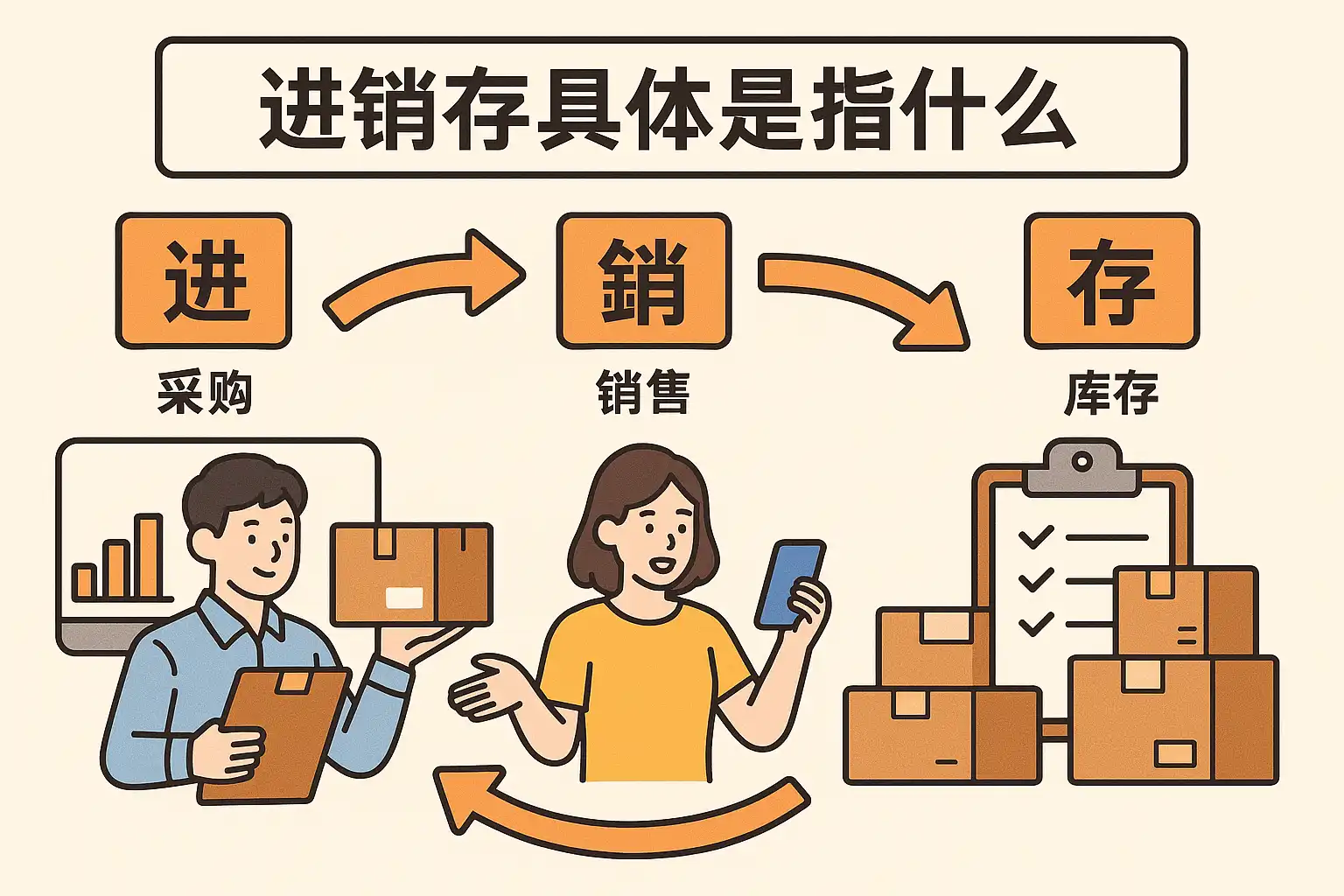 我在学习企业管理时看到‘进销存’这个词,但不太明白它具体包含哪些内容。能详细解释一下进销存具体是指什么吗?