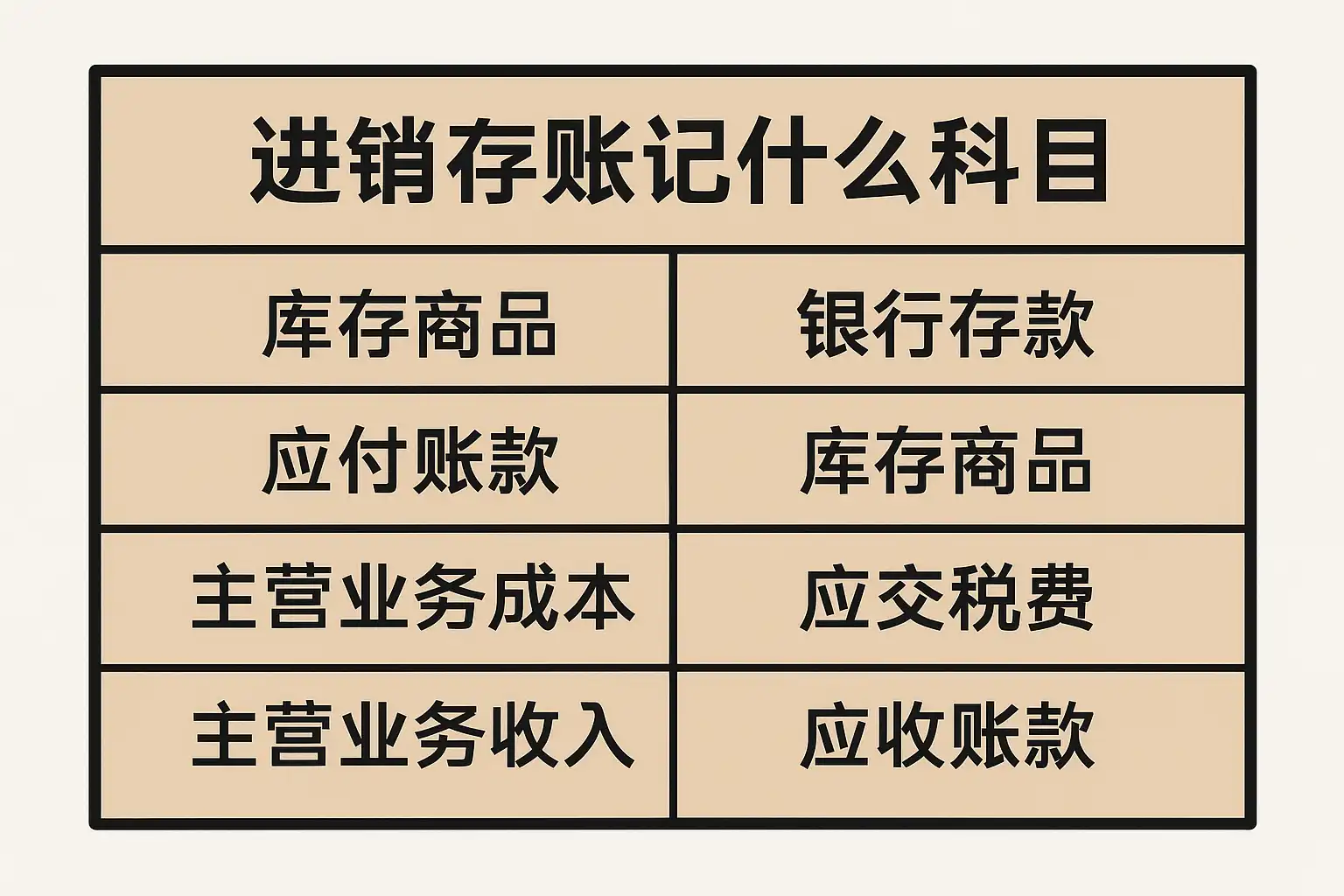 进销存业务涵盖采购(进)、销售(销)、库存管理(存)三个环节,每一环节对应着不同的会计核算内容。下表展示了常见业务与对应会计科目的关系:
