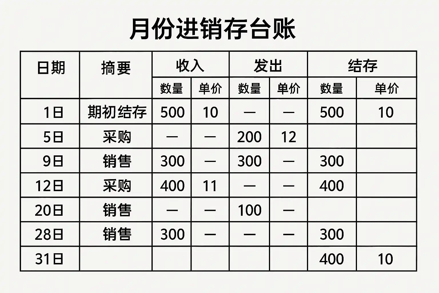 - 月进销存台账,又称月度进销存明细表,是企业用于记录某一类商品或原材料在一个月内“入库-出库-结余”全过程的数据表。