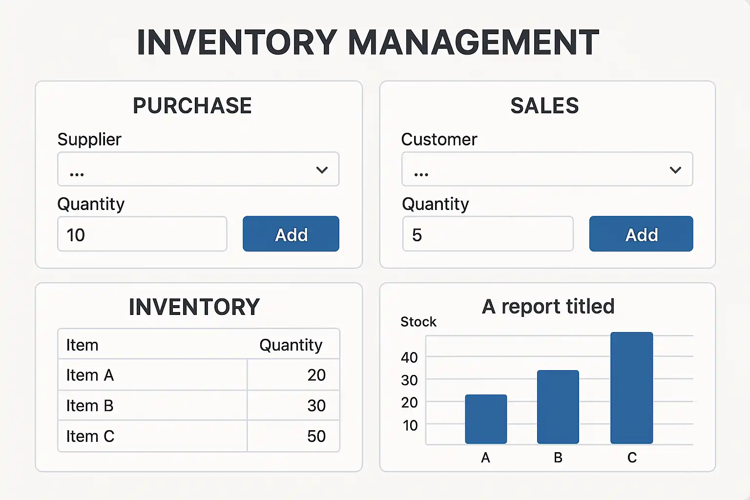 - 梳理现有业务环节(采购→入库→出库→销售→盘点)