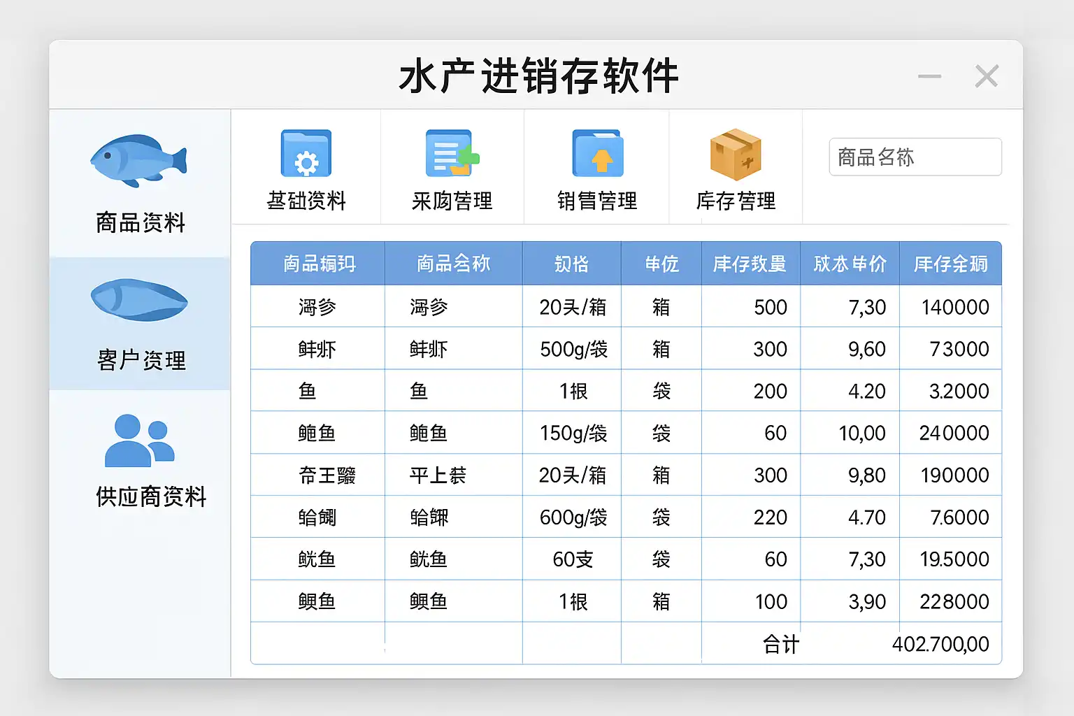 现代水产进销存软件通过先进的库存管理模块,实现精准跟踪和优化管理: