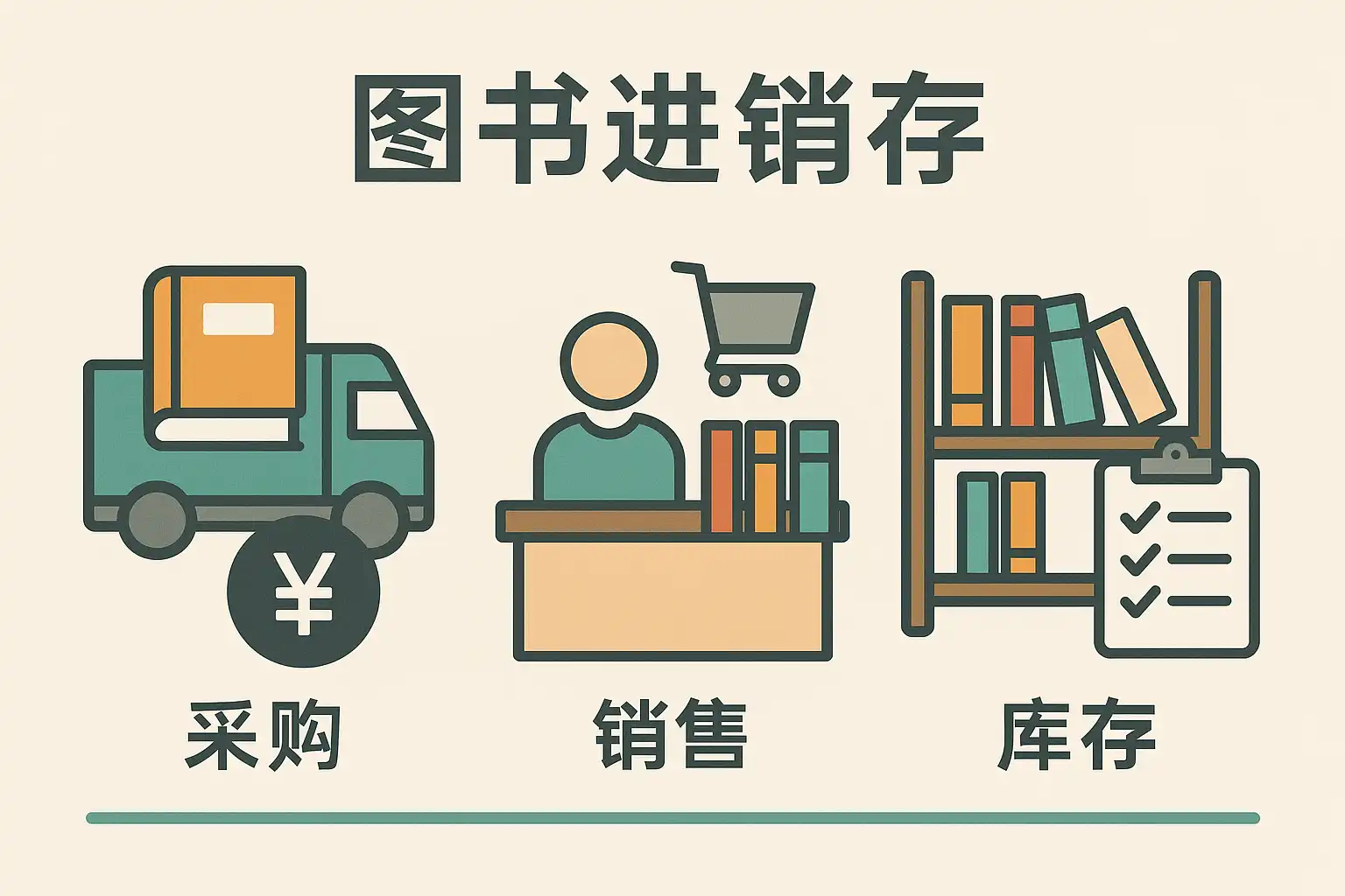 图书进销存是指对图书商品从采购(进)、销售(销)、至库存(存)全过程进行记录与管理的方法体系。它涵盖了以下三个环节: