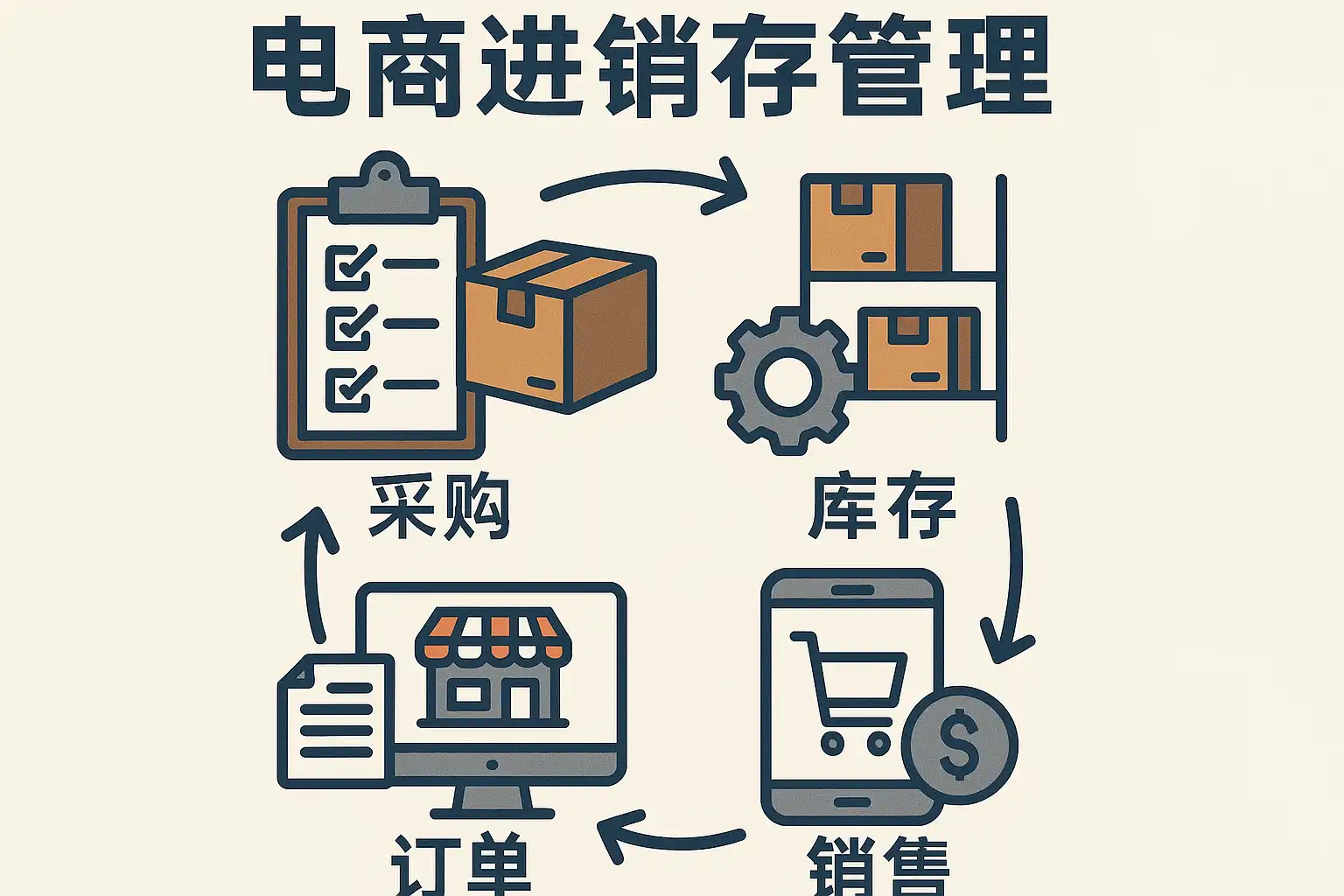 电商进销存管理是指通过系统化的方法对电子商务平台的商品采购、库存和销售进行全面控制与优化的过程。它主要包括三个核心环节: