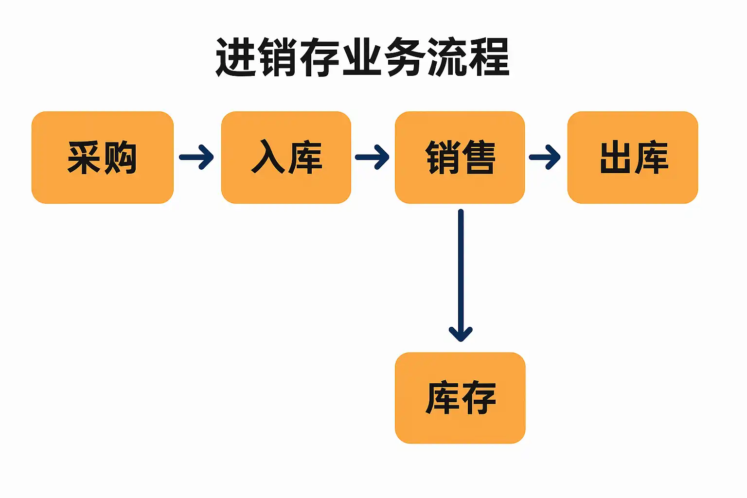 进销存整个业务流程主要包括采购、入库、库存管理、销售和出库五个核心环节。具体流程如下: