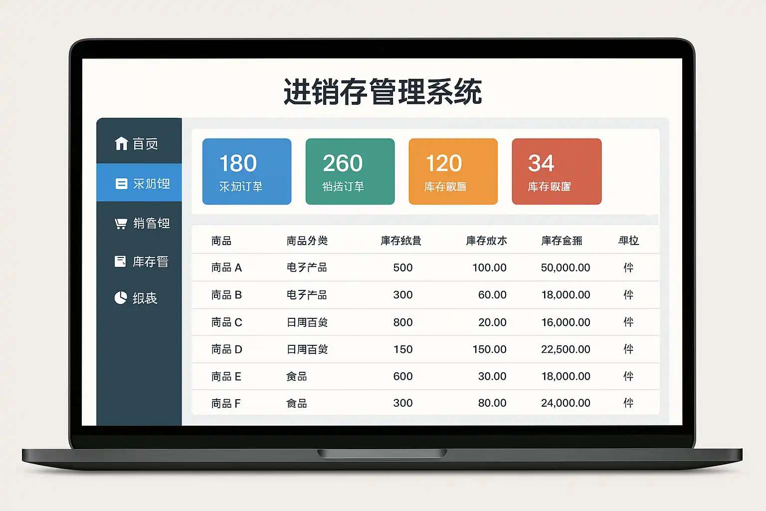 进销存管理常用的软件包括金蝶、用友、SAP Business One和帆软等。这些软件支持库存管理、采购订单、销售订单和财务对接。以金蝶为例,它能实现库存实时更新,减少库存积压,提升周转率达15%。选择时应根据企业规模和需求选择对应的软件版本。