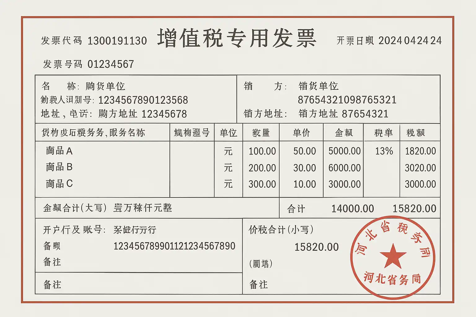 - 增值税专用发票:用于采购原材料或商品,支持抵扣增值税,是最常见的进项发票。