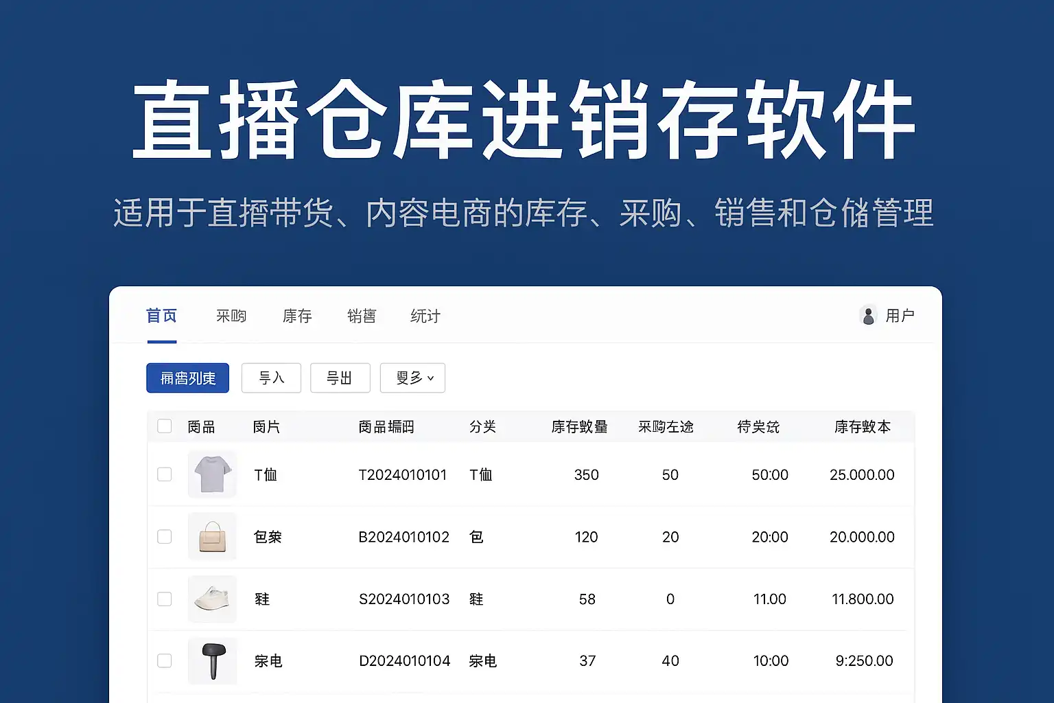直播行业常用进销存方案主要有以下几类: