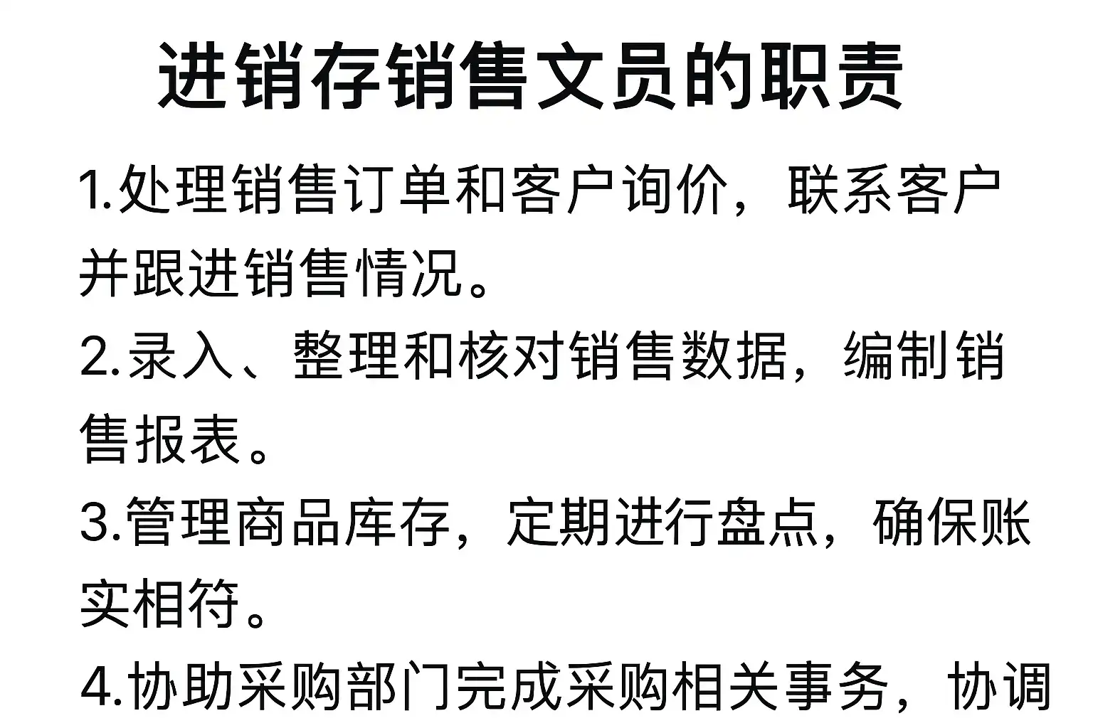 进销存销售文员的职责是什么