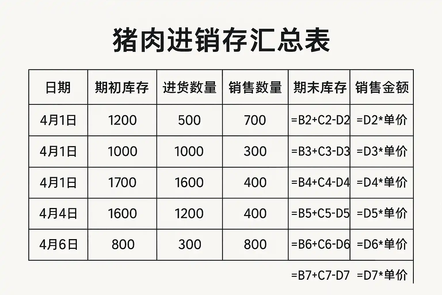 《猪肉进销存汇总表公式详解,如何快速计算库存?》