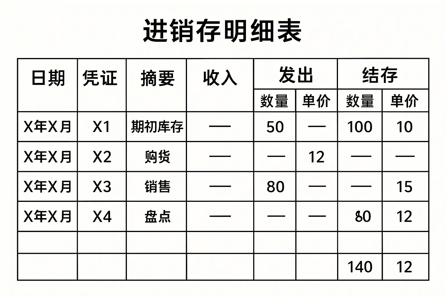 进销存明细表中常见的技术术语有哪些?能举例说明吗?