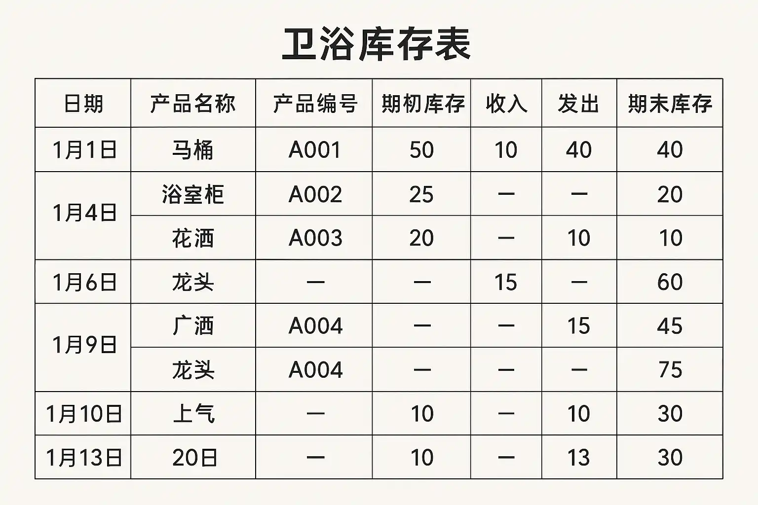 卫浴库存表自动进销存,是指利用软件系统实现对卫浴产品从采购入库、销售出库到盘点调拨等全流程的数据实时管理。与传统手工记账不同,自动进销存通过录入初始数据后即可全程追踪每一次商品流转,实现以下目标: