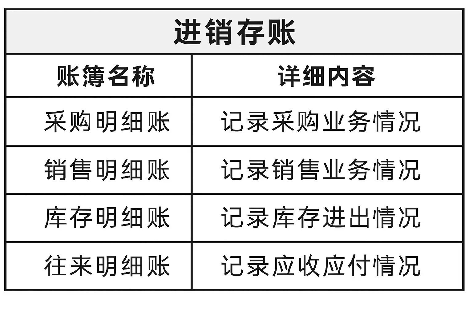 - 库存账:详细记录库存商品的数量变动,包括入库、出库和盘点数据,确保库存准确性。