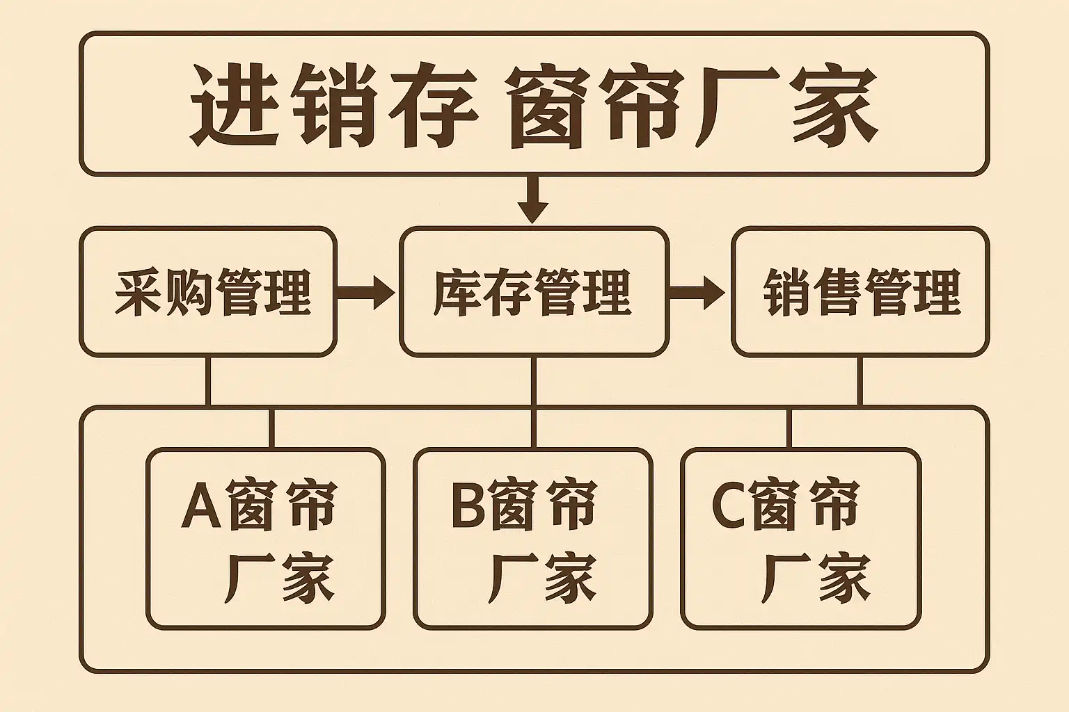 以下是典型中小型窗帘厂利用数字化工具搭建标准“进—销—存”业务流程建议: