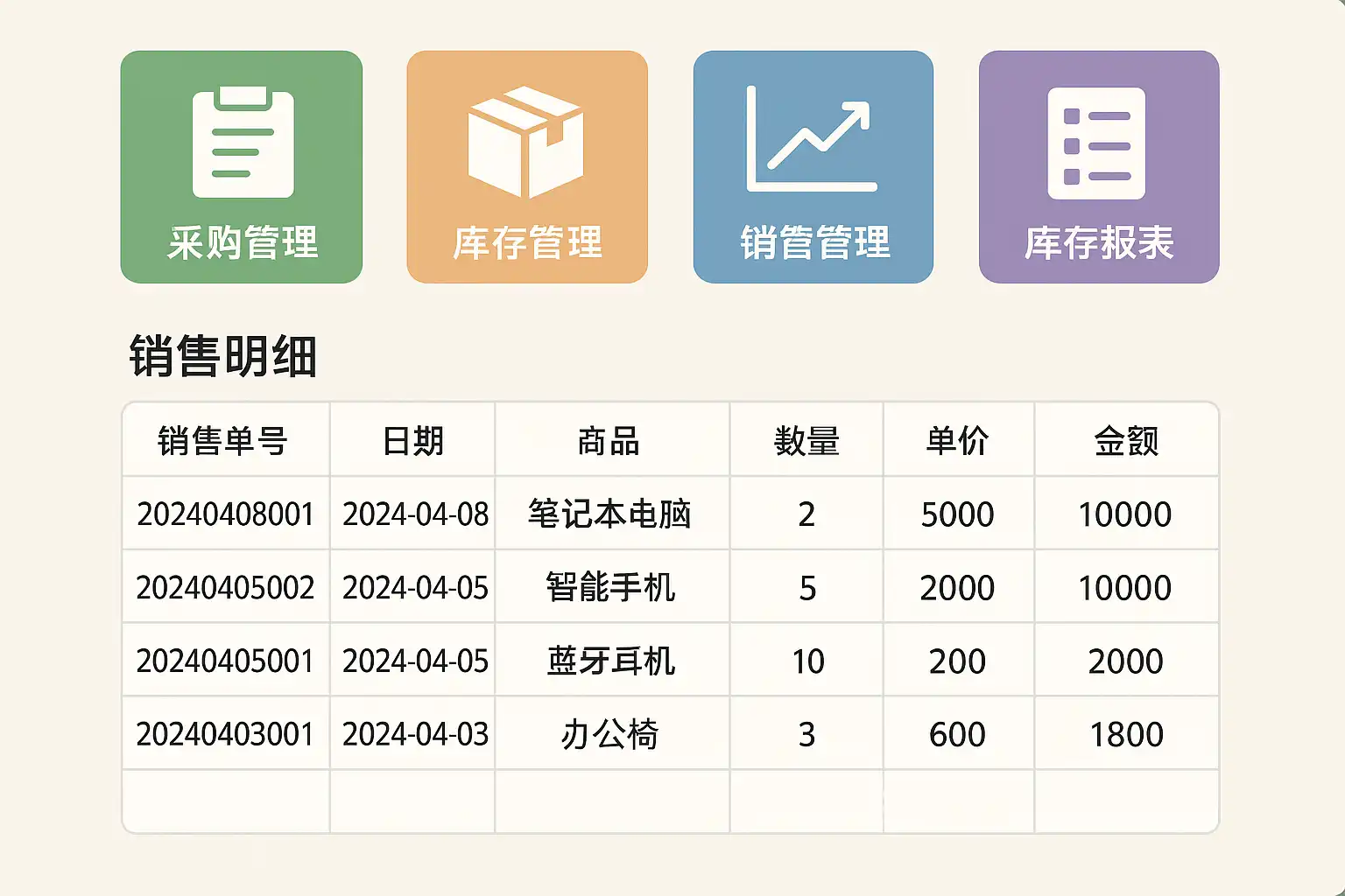 - 提供库存报表(如月度出入库统计),帮助决策者精准分析销量趋势。