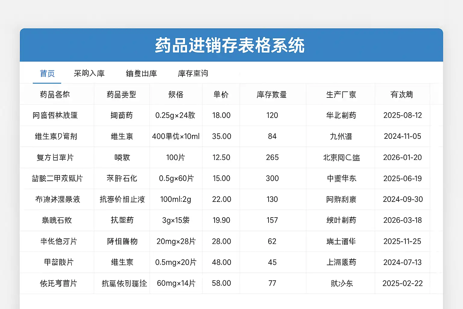 药品进销存表格系统有哪些