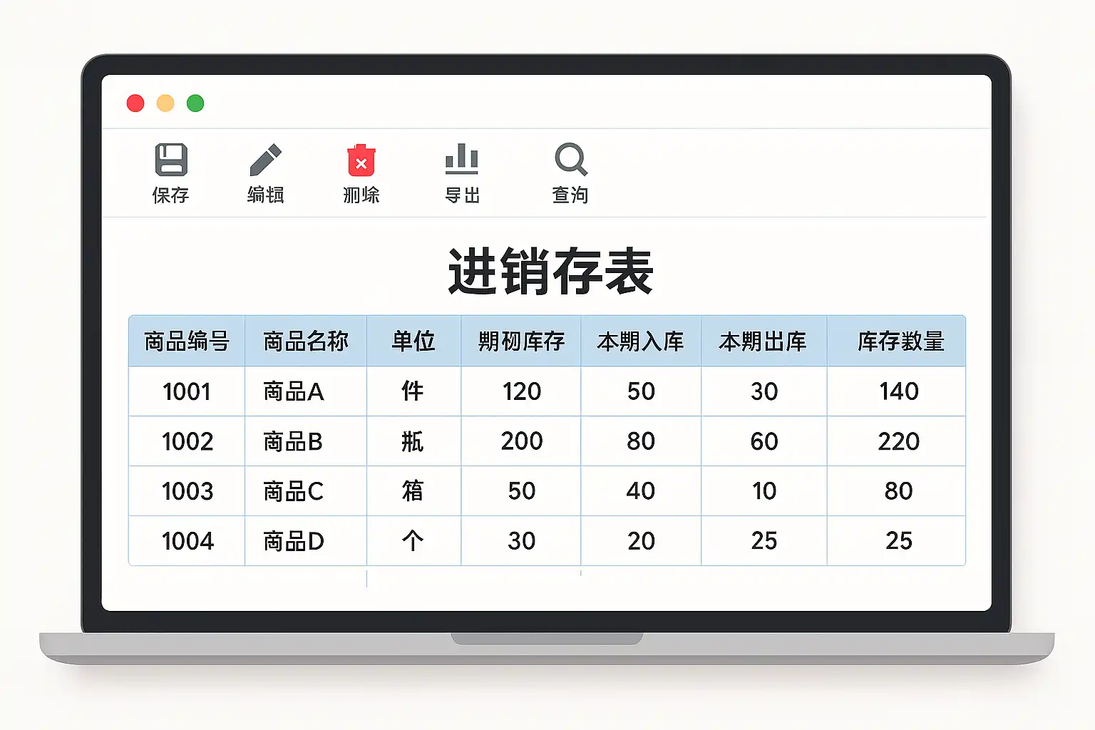 | 模块名称 | 功能描述 | 使用场景 ||------------|-----------------------------------|----------------------|| 基础资料 | 商品档案维护,客户&供应商管理 | 新品录入/月度核查 || 入库模块 | 自动生成采购单并登记到库存 | 到货验收 || 出库模块 | 按销售订单快速出库 | 配送发货 || 库存查询 | 实时盘点,各类库存台账自动汇总 | 库房日常盘查 || 报表中心 | 一键导出月结/年结各类损益明细 | 财务做账 |应用优势举例说明