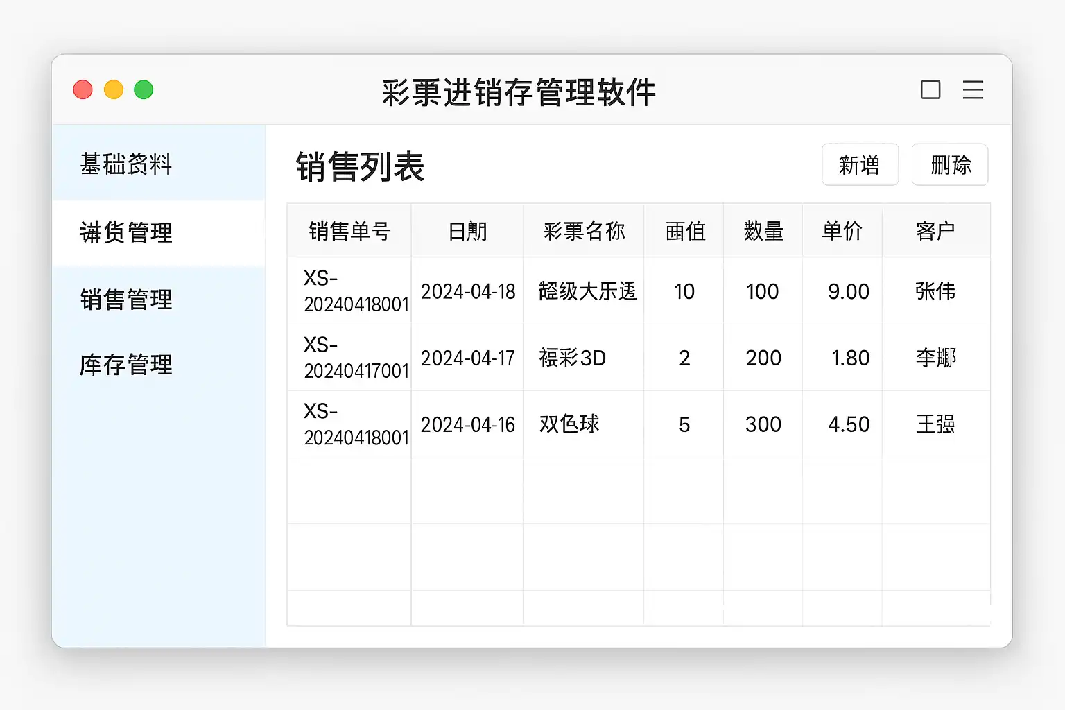 | 库存监控 | 实时掌握各类彩票余量、防止缺货或积压 |