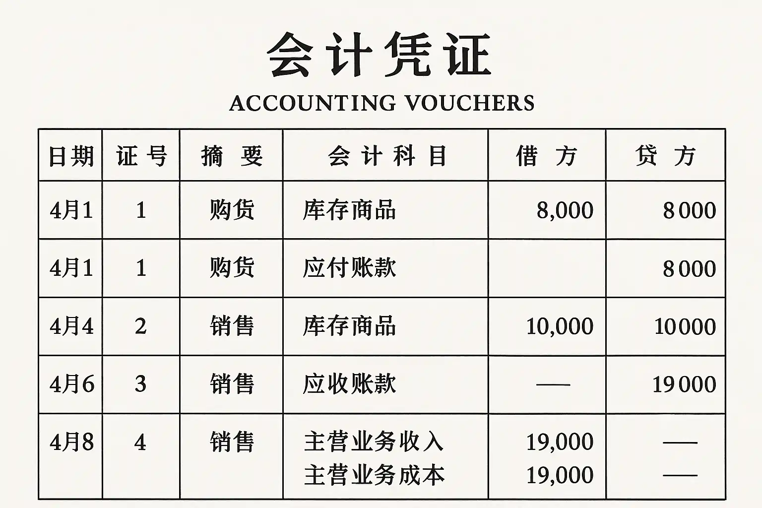 - 举例:A公司采购100台显示器,每台800元,总额8万元。仓管员验收入库后开具“采购入库单”,财务据此做“借:库存商品8万元,贷:应付账款8万元”。