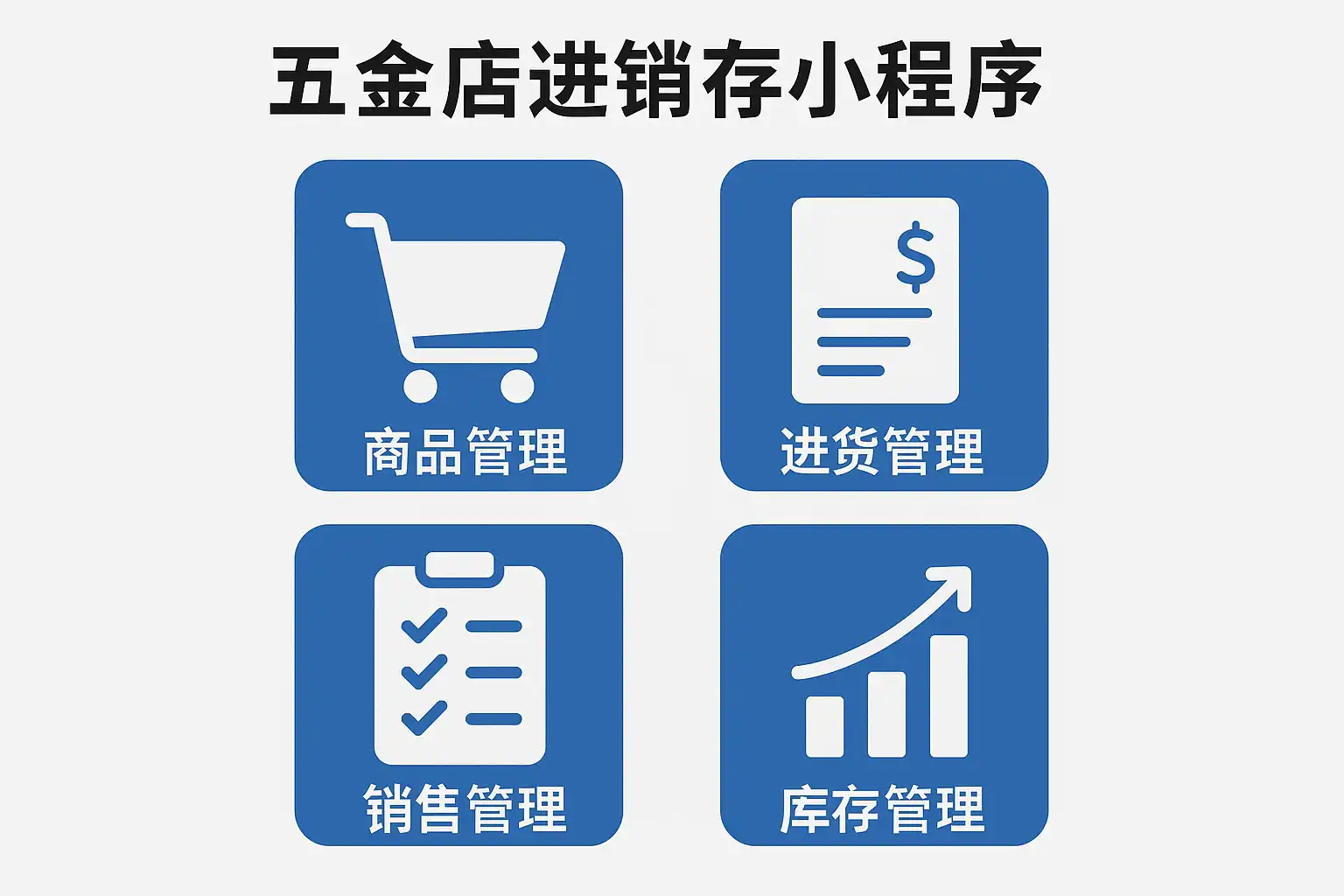 当前,针对五金店的进销存需求,小程序主要分为以下5大类型: